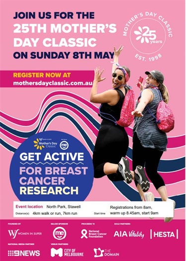 Walk or run on Sunday 8 May to support the Mother's Day Classic Foundation.