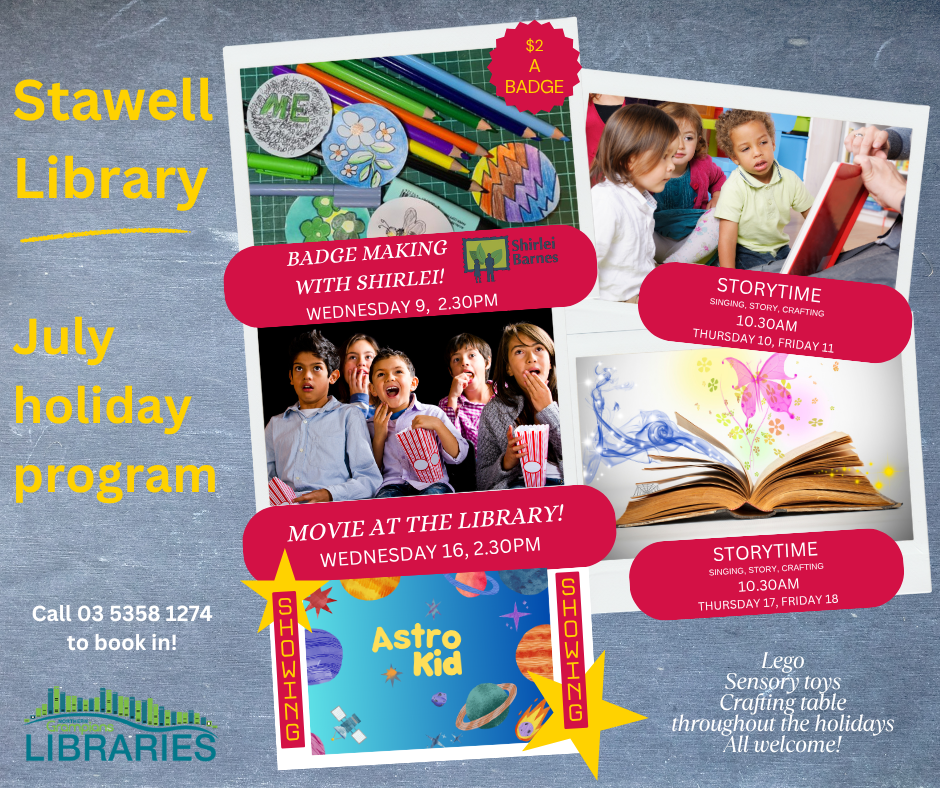 Lego, sensory toys, crafting table are all available throughout the holidays. Call 03 5358 1274 to book in, all are welcome.