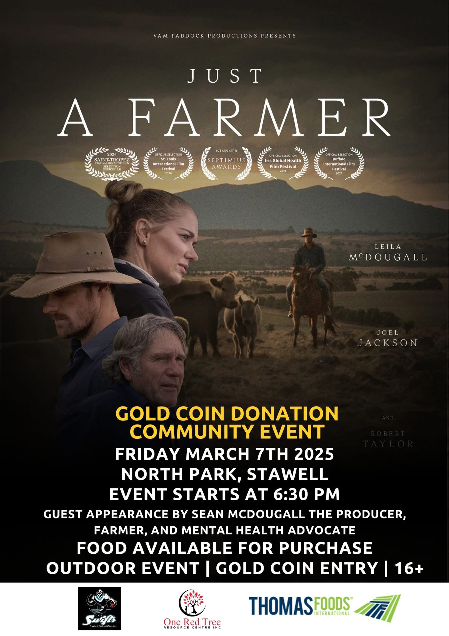Just a Farmer screening under the stars - a chance to be part of an important conversation on mental health in our regional communities. Guest appearance by Sean McDougall the producer, farmer and mental health advocate. Food available for purchase.