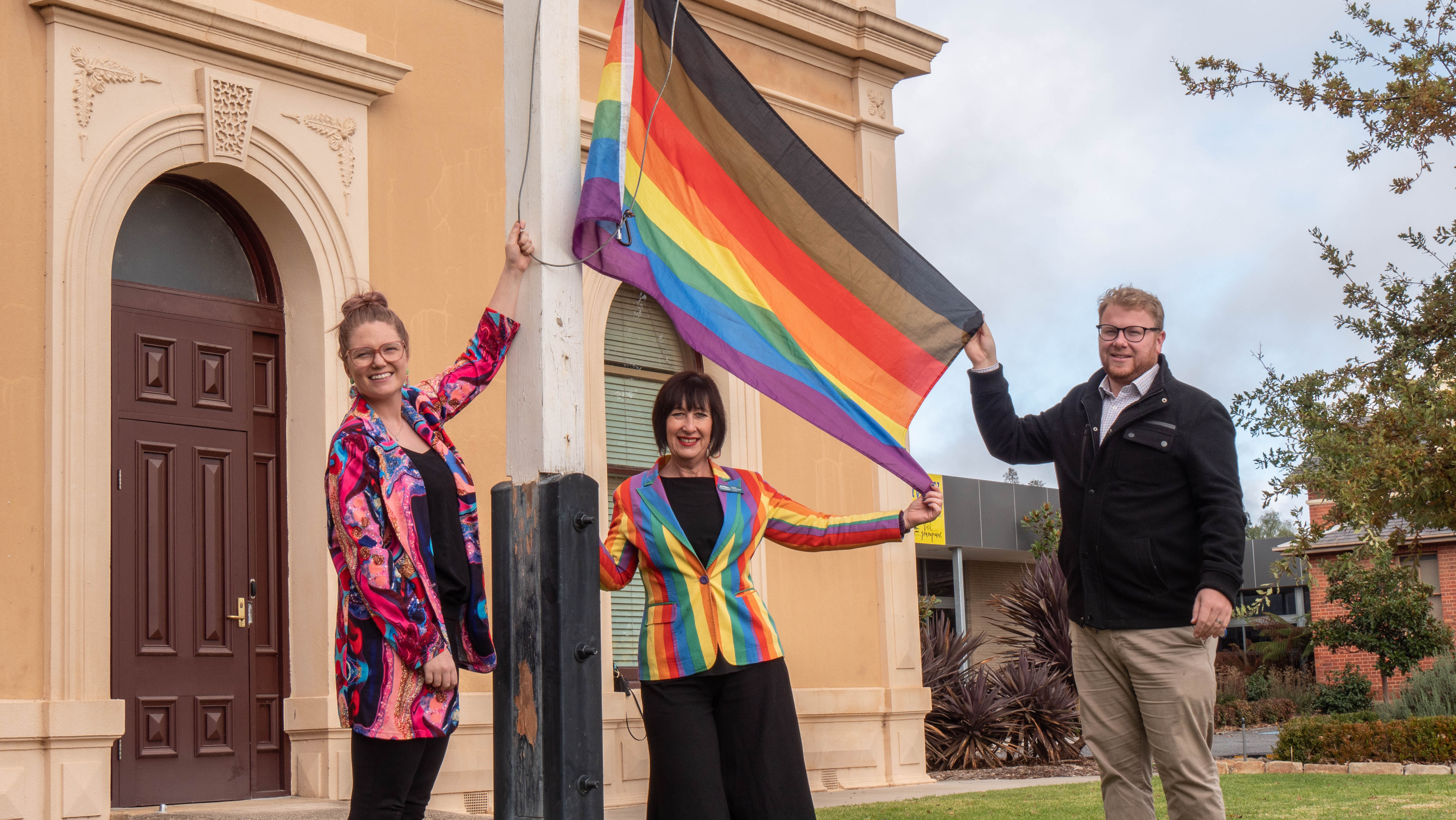 Council’s campaign kicked off with its annual rainbow flag-raising ceremony conducted this year by Cr Lauren Dempsey alongside Northern Grampians Shire Council CEO Ms Liana Thompson and Director Infrastructure and Amenity Mr Trenton Fithall.