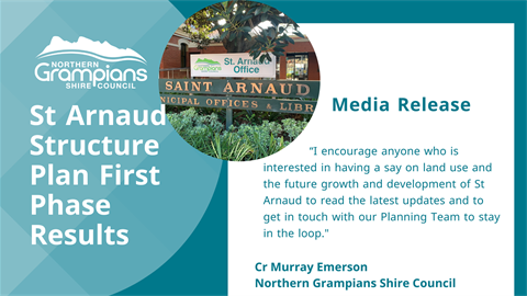 Mesh’s draft Emerging Themes document summarises the issues that relate to these themes. Council’s “What We Heard” July update provides a snapshot of survey results consolidating the community’s feedback. Both documents are available for download from www.ngshire.vic.gov.au/StAStructurePlan or as a print-out by request from customer service at St Arnaud Town Hall. To stay abreast of the Plan’s development, the community is encouraged to get in touch with Dana Foenander, NGSC Strategic Planner on 03 5358 0539 or email dana.foenander@ngshire.vic.gov.au.